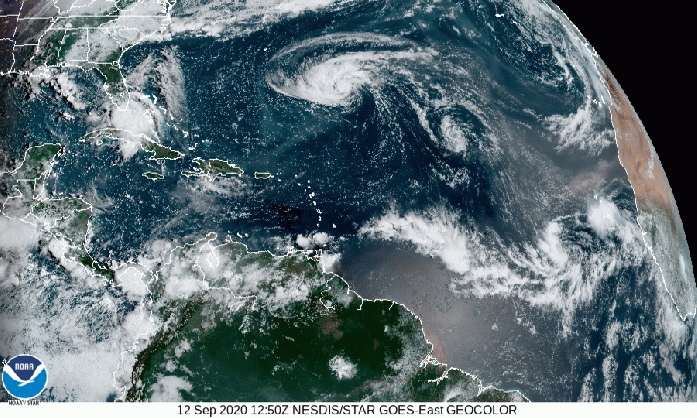 Each of our systems is visible on this loop of the tropical Atlantic. From west to east, we have a disturbance in the Gulf (30% chance of development), Sally (near S FL), Paulette (SE of Bermuda), Rene (SE of Paulette), TD 20 (embedded within the Inter-tropical Convergence Zone about half way between Barbados and Africa), and Invest 97L (southwest of the Cabo Verde Islands). If you look at the far eastern edge of the loop, you’ll see the first hints of our next wave set to emerge off Africa in a couple days. Unfortunately, we’ll have to keep an eye on that one too.