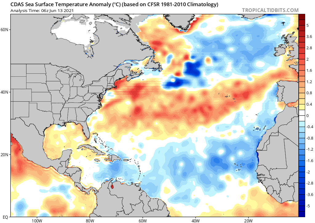 Taking a peek at sea surface temperature anomalies in the Atlantic, much of the area we usually watch for tropical development later in the season between the Lesser Antilles and Africa is cooler than normal. This is a promising sign for limiting the most intense hurricane activity later in the season, though there is still plenty of time for this pattern to change and it only takes one storm making use of “marginal” conditions to cause problems.