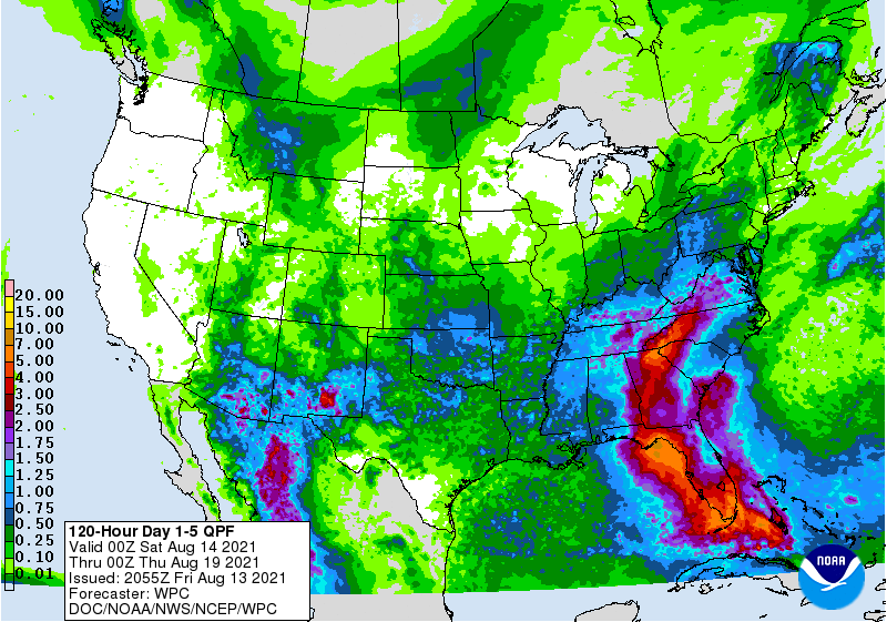 Heavy rain will pose a flash flooding threat all the way up into the southern Appalachians as Fred’s circulation gets picked up by the trough and carried northeast midweek.
